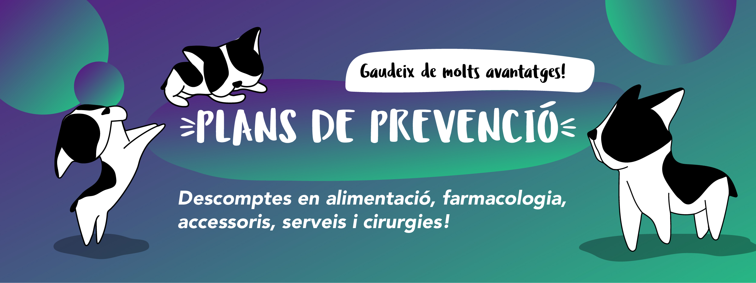 Otra especialidad son los planes de salud o planes de prevención donde cubren vacunas anuales, vacuna leishmania, vacuna de tos de las perreras, analíticas de sangre, analíticas de orina, desparasitaciones …. Según el plan de prevención o plan de salud que escojas. Tienes desde un plan de cachorro donde se cubre todas las vacunas necesarias y el microchip, como un senior o un geriátrico donde entran pruebas diagnosticas completas. Con todos los planes de prevención tienes descuentos en productos y accesorios que puedes comprar en la tienda de Més que gossos de Santa Coloma de Gramenet.